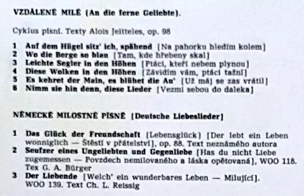 | Vzdálené Milé /Cyklus Písní/, Op. 98 (An Die Ferne Gellebte) | ||
