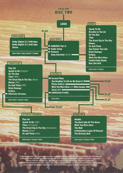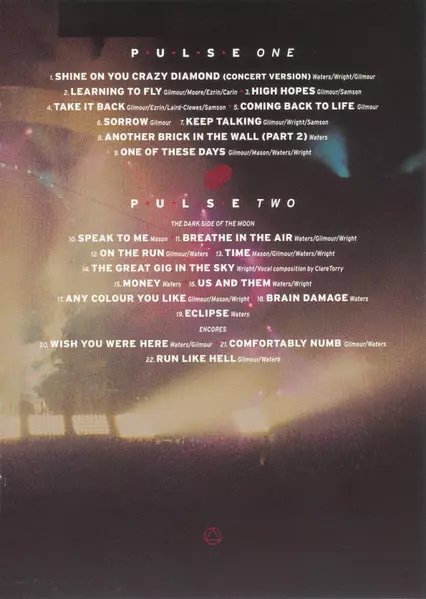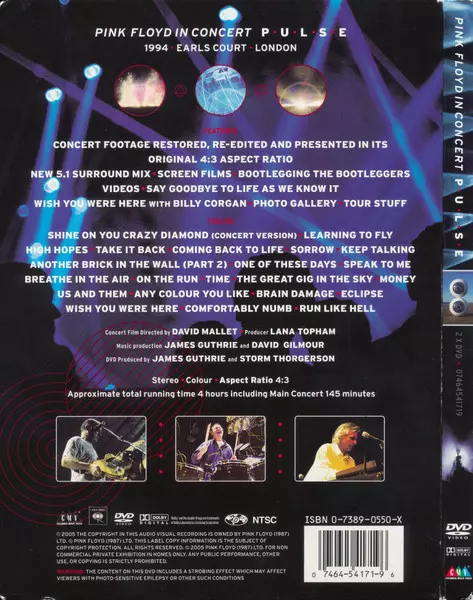 Pink Floyd: Pulse DIGI verzia na 2DVD v digipack edícii. Toto konkrétne vydanie vyšlo v USA vo vydavateľstve Columbia v spolupráci s Columbia Music Video dňa 11. júla 2006. Album zasahuje do žánrov Rock, Progresívny rock a Psychedelický rock.