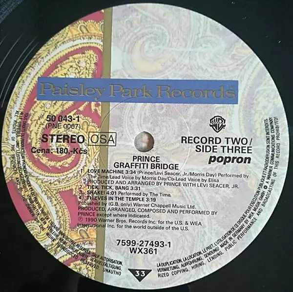 Prince: Graffiti Bridge (2xLP) verzia na vinylu 2LP v štandardný edícii. Toto konkrétne vydanie vyšlo v Československu vo vydavateľstve Popron v spolupráci s Paisley Park a Warner Bros. Records roka 1990. Album zasahuje do žánrov Rock, Pop, Stage & Screen, Funk / Soul, Pop Rock, Soundtrack, Funk a Minneapolis Sound.