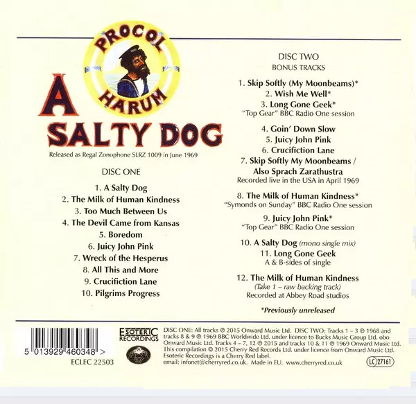 Newly remastered and expanded 2CD edition of the classic 1969 Procol Harum album This 2CD deluxe edition of "A Salty Dog" has been expanded with 12 bonus tracks - 5 previously unreleased. The package includes a mono single mix of the title track and B-side, an early recording of "The Milk Of Human Kindness" and 5 previously unreleased tracks fro...