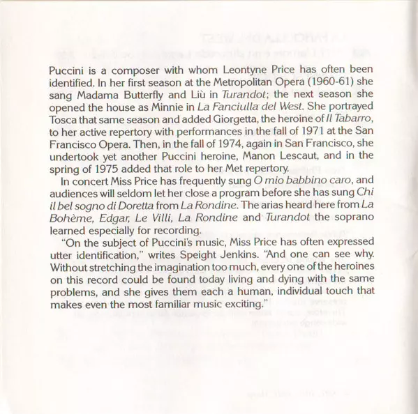 | Interpret | Giacomo Puccini | New Philharmonia Orchestra | Leontyne Price | Edward Downes |
