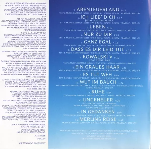 Pur: Abenteuerland verzia na CD v štandardný edícii. Toto konkrétne vydanie vyšlo v Evropě vo vydavateľstve Intercord dňa 31. júla 1995. Album zasahuje do žánrov Rock, Pop a Pop Rock.