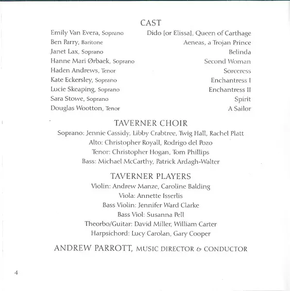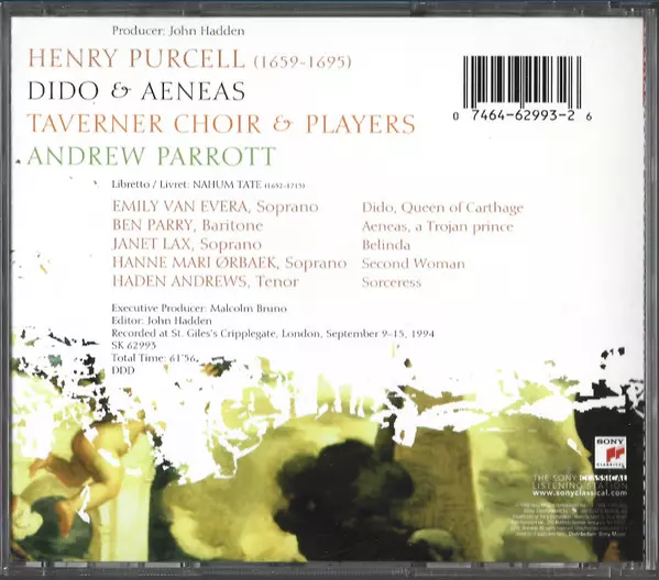 | Interpret | Henry Purcell | Andrew Parrott | Taverner Players | Taverner Choir | Ben Parry | Emily Van Evera |