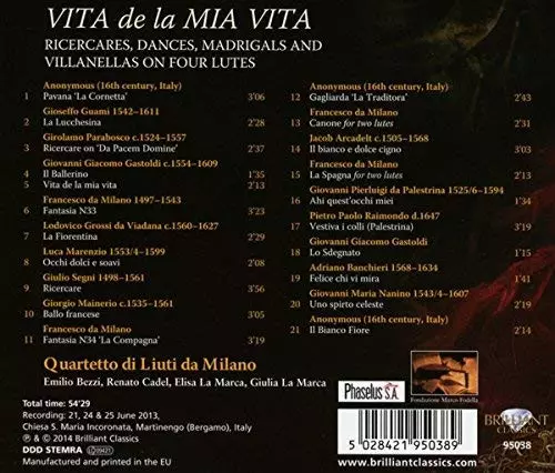 Názov | Vita De La Mia Vita (Ricercares, Dances, Madrigals And Villanellas On Four Lutes) |