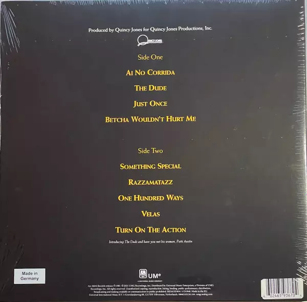 Quincy Jones: The Dude CLR | LTD | NUM verzia na vinylu LP v kolorované limitované individuálne číslované remasterované edícii. Toto konkrétne vydanie vyšlo v Evropě vo vydavateľstve UMe v spolupráci s A&M Records dňa 25. októbra 2024. Album zasahuje do žánrov Elektronická hudba, Funk / Soul, Soul, Funk, Disco a Boogie.