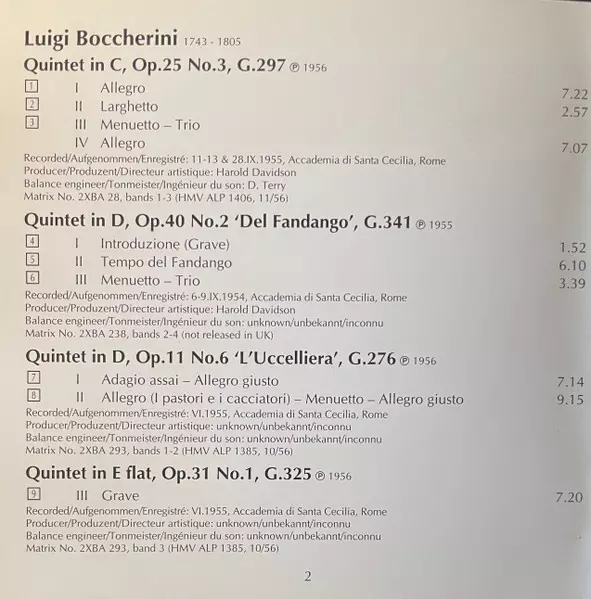 | Interpret | Luigi Boccherini | Quintetto Boccherini |