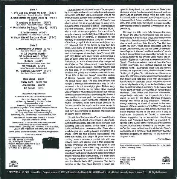 | 4-6 | Ran Blake Quartet: Short Life Of Barbara Monk | 7:24 min | |