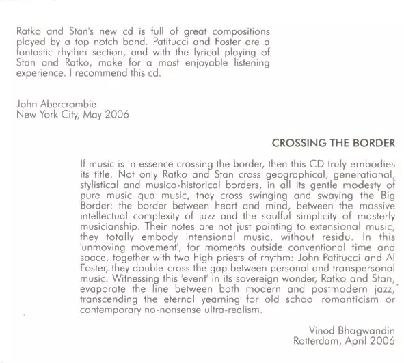 | Interpret | John Patitucci | Al Foster | Ratko Zjaca | Stanislav Mitrovic |