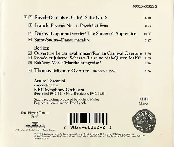 | Interpret | Maurice Ravel | Camille Saint-Saëns | Hector Berlioz | César Franck | Arturo Toscanini | NBC Symphony Orchestra | Paul Dukas | Ambroise Thomas |