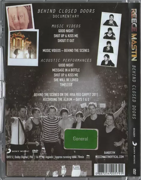 Reece Mastin: Behind Closed Doors verzia na DVD v štandardný edícii. Toto konkrétne vydanie vyšlo v Austrálii vo vydavateľstve Sony Music dňa 8. januára 2019. Album zasahuje do žánrov Rock a Pop Rock.