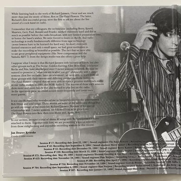 Richard Janssen: The Fatal Flowers - Shine - Rex - Live On 2 Meter Sessions verzia na CD v štandardný edícii. Toto konkrétne vydanie vyšlo v Nizozemsku vo vydavateľstve Coast to Coast v spolupráci s 2 Meter Sessies dňa 12. septembra 2025. Album zasahuje do žánrov Rock, Pop, Alternatívny rock a Akustická hudba.