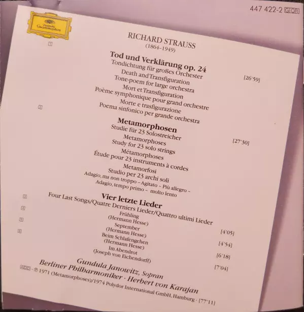 | Interpret | Herbert von Karajan | Berliner Philharmoniker | Richard Strauss | Gundula Janowitz |