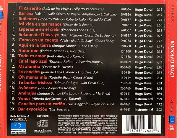 | Interpret | Rodolfo Biagi | Hugo Duval |