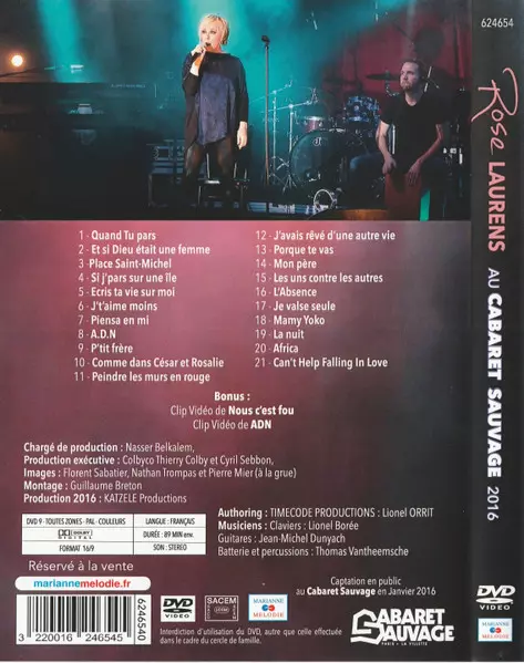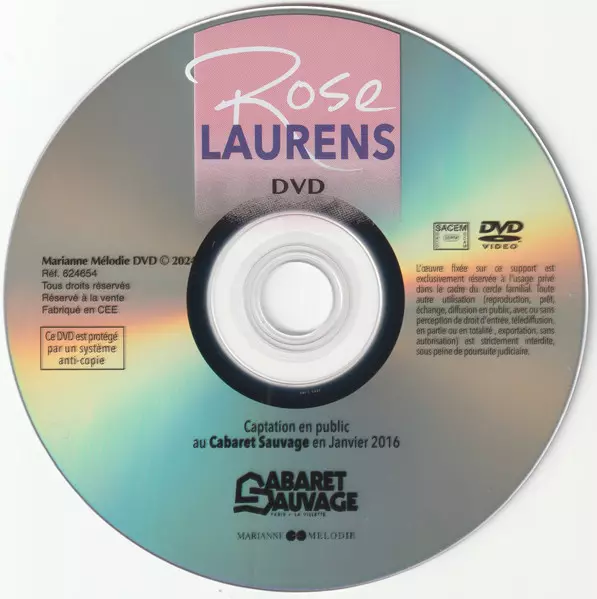 Rose Laurens: Rose Laurens Au Cabaret Sauvage 2016 verzia na DVD v štandardný edícii. Toto konkrétne vydanie vyšlo v Francii vo vydavateľstve Marianne Mélodie dňa 16. februára 2024. Album možno zaradiť do žánru Pop.