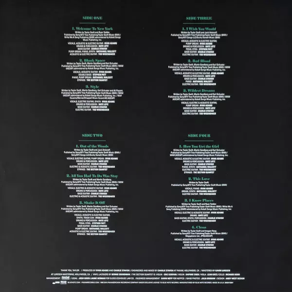 Ryan Adams: 1989 verzia na vinylu 2LP v štandardný edícii. Toto konkrétne vydanie vyšlo v USA vo vydavateľstve Pax Americana Record Company v spolupráci s Blue Note dňa 10. marca 2021. Album zasahuje do žánrov Rock a Alternatívny rock.