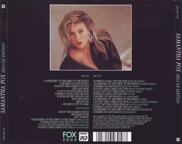 V roce 1986 vydala britská popová ikona a pin-up legenda Samantha Fox své nejúspěšnější album "Touch Me". O rok později vyšlo její druhé album "Samantha Fox". Auf Cherry Pop erscheint nun eine Deluxe Edition dieses 80er Jahre Pop-Rock-Klassikers. Das Album enthält die Chart-Hits "Nothing's Gonna Stop Me Now" (produziert von Stock Aitken Waterman), "I Surrender (To The Spirit Of The Night)", "I Promise You (Get Ready)", "True Devotion" und "Naughty Girls (Need Love Too)".