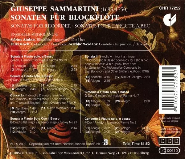 | Interpret | Giuseppe Sammartini | Ensemble Mediolanum |
