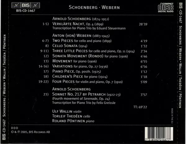 | Interpret | Arnold Schoenberg | Anton Webern | Ulf Wallin | Torleif Thedéen | Roland Pöntinen |