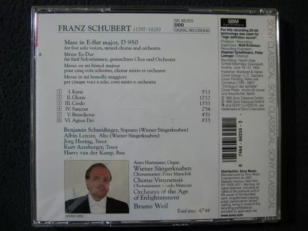 | Interpret | Franz Schubert | Orchestra Of The Age Of Enlightenment | Die Wiener Sängerknaben | Bruno Weil | Harry van der Kamp | Chorus Viennensis | Kurt Azesberger | Jörg Hering |