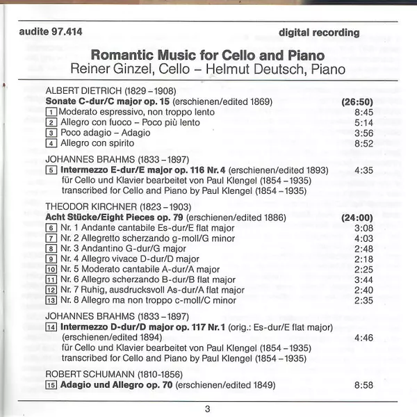 | Interpret | Johannes Brahms | Robert Schumann | Helmut Deutsch | Albert Dietrich | Theodor Kirchner | Reiner Ginzel |