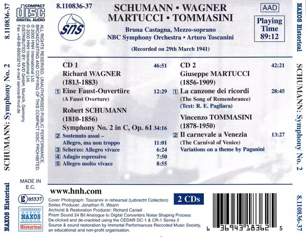 | Interpret | Robert Schumann | Richard Wagner | Arturo Toscanini | NBC Symphony Orchestra | Giuseppe Martucci | Bruna Castagna | Vincenzo Tommasini |