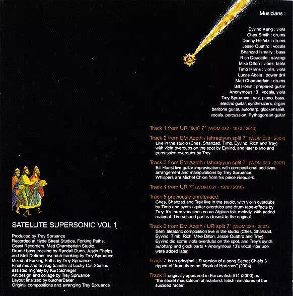 | Performer Ches Smith, Shahzad Ismaily | Performer, Synthesizer [Synth Overdubs], Guitar [Overdubs], Effects [Drum Tape-effects] Trey Spruance | Violin [Overdubs] Timb Harris | |||