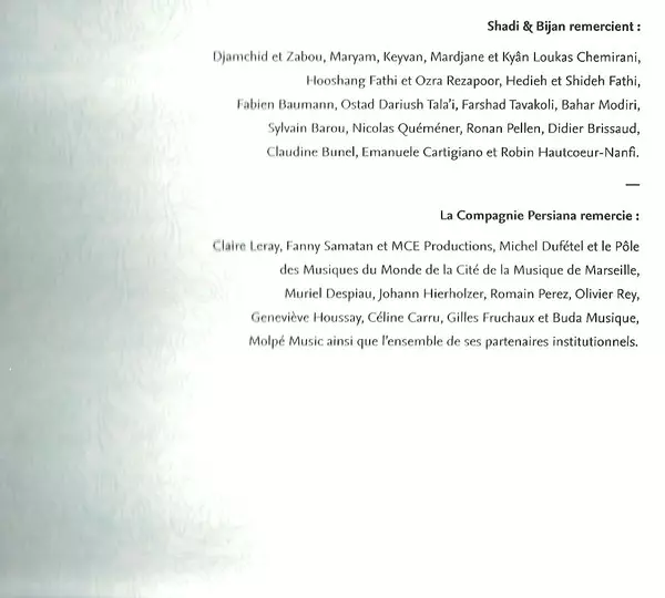 | Interpret | Bijan Chemirani | Shadi Fathi |