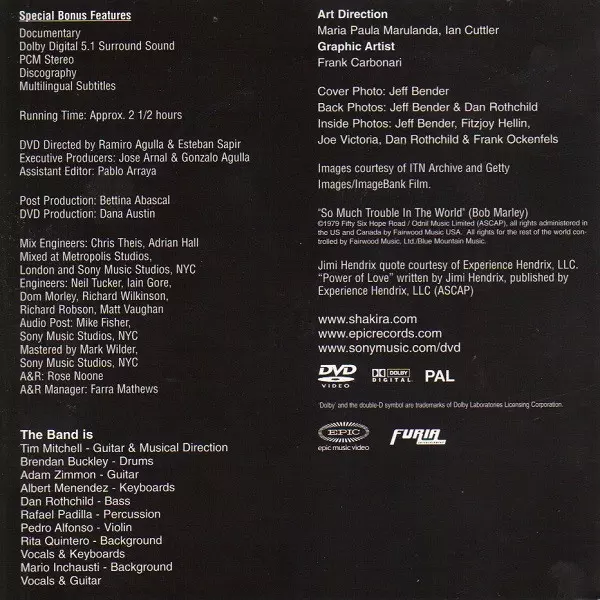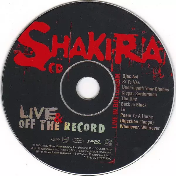 Shakira: Live & Off The Record verzia na CD/DVD v štandardný edícii. Toto konkrétne vydanie vyšlo v Evropě vo vydavateľstve Epic roka 2004. Album zasahuje do žánrov Rock, Pop, Elektronická hudba, Latinská hudba, Pop Rock a Tango.