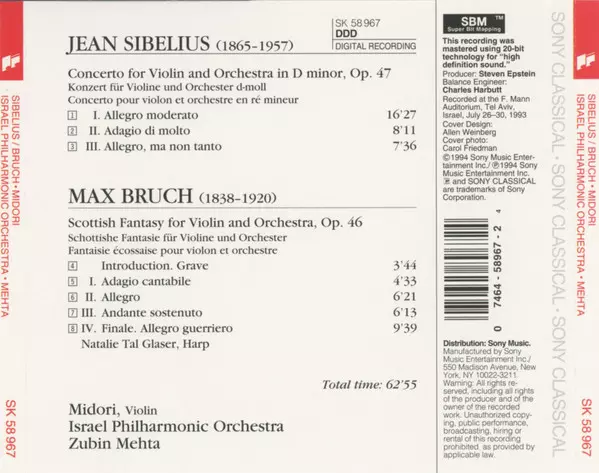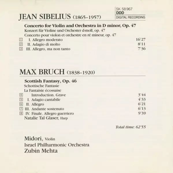 | Interpret | Zubin Mehta | Jean Sibelius | Max Bruch | Israel Philharmonic Orchestra | Midori Goto |
