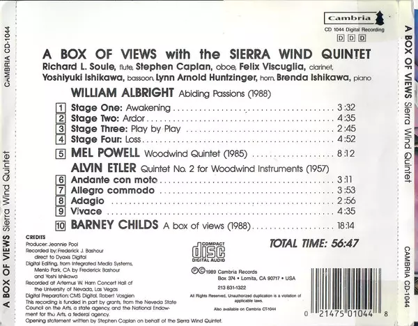 | Interpret | Mel Powell | William Albright | Sierra Wind Quintet | Barney Childs | Alvin Etler |