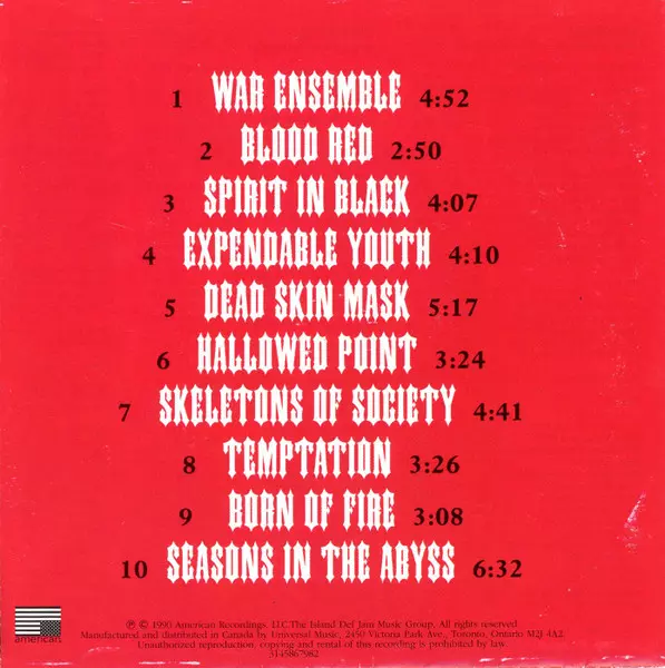 Nahrávání pátého studiového alba začalo v roce 1989. Jako koproducent byl angažován Andy Wallace. Seasons in the Abyss vyšlo v říjnu 1990 prostřednictvím nové nahrávací společnosti Ricka Rubina Def American. Album se umístilo v americké hitparádě na 44. místě a v roce 1993 získalo zlatou desku. K titulní skladbě kapela natočila svůj první video...