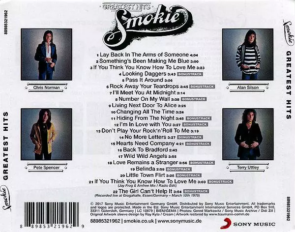 Legendární "Greatest Hits" od Smokie v originálním obalu a doplněné 12 bonusovými skladbami s hrací dobou přes 76 minut.
