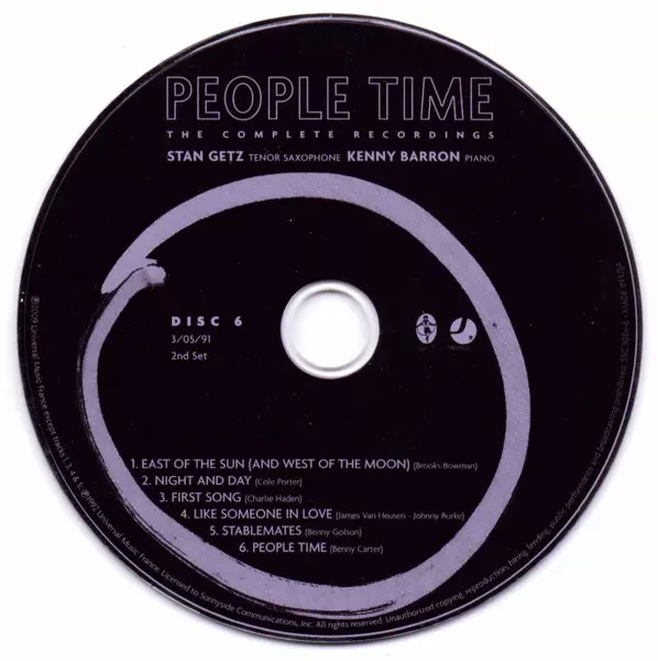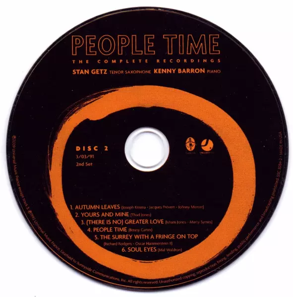 Stan Getz: People Time (The Complete Recordings) verzia na 7CD/Box Set v štandardný edícii. Toto konkrétne vydanie vyšlo v USA vo vydavateľstve Sunnyside v spolupráci s Sunnyside Communications dňa 20. apríla 2010. Album zasahuje do žánrov Jazz, Balada, Cool Jazz a Bop.