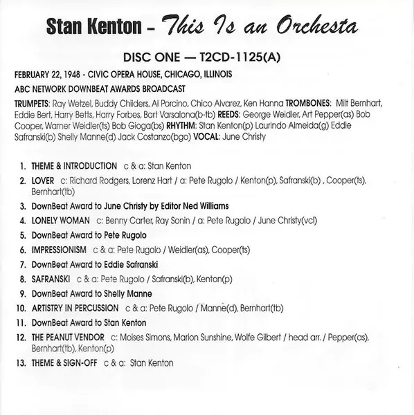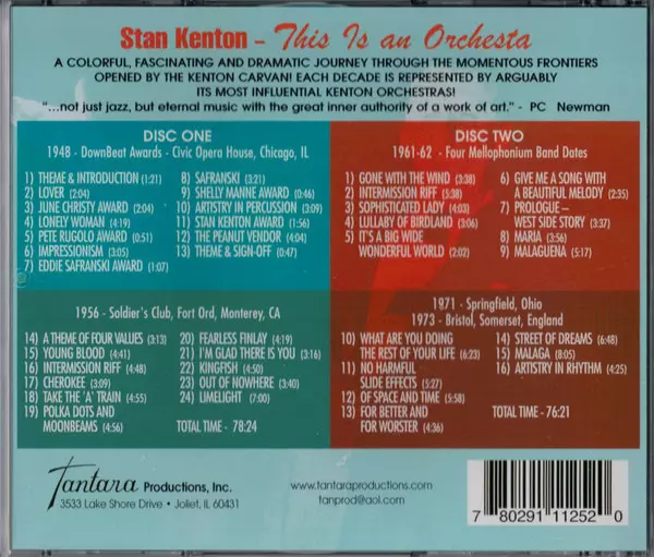 Stan Kenton: This Is An Orchestra! verzia na 2CD v remasterované edícii. Toto konkrétne vydanie vyšlo v USA vo vydavateľstve Tantara (4) dňa 22. júna 2010. Album zasahuje do žánrov Jazz a Big Band.