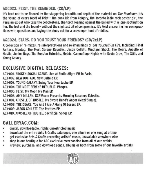 Stars: Do You Trust Your Friends? verzia na CD v štandardný edícii. Toto konkrétne vydanie vyšlo v Kanadě vo vydavateľstve Arts & Crafts International dňa 4. marca 2019. Album zasahuje do žánrov Rock, Elektronická hudba, Indie Rock, Folk Rock, Downtempo a Synth-pop.