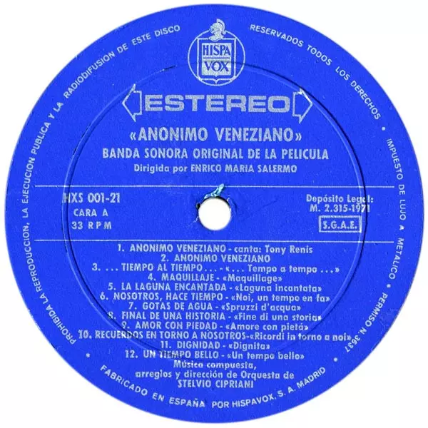 | Názov | Anonimo Veneziano - Banda Sonora Original De La Pelicula |