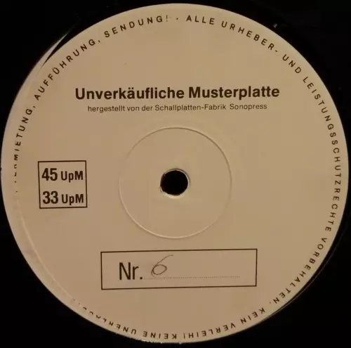 | Viac informácií | Test Pressing White Label — 45RPM Germany |