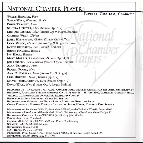 | Interpret | Johannes Brahms | Richard Strauss | Max Reger | Lowell E. Graham | National Chamber Players |