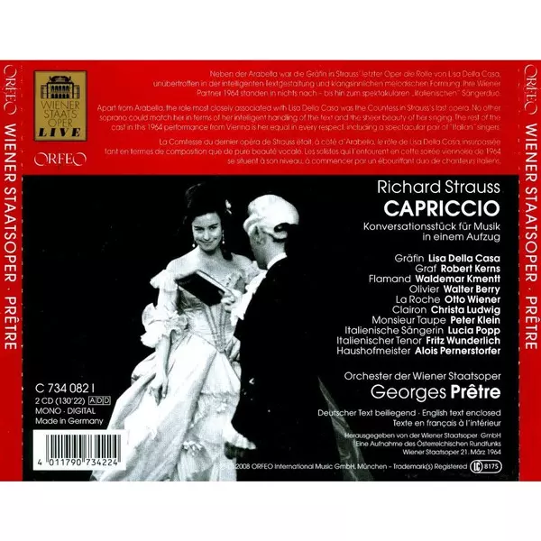 | Interpret | Richard Strauss | Christa Ludwig | Walter Berry | Georges Prêtre | Fritz Wunderlich | Waldemar Kmentt | Lucia Popp | Lisa Della Casa | Robert Kerns | Otto Wiener |