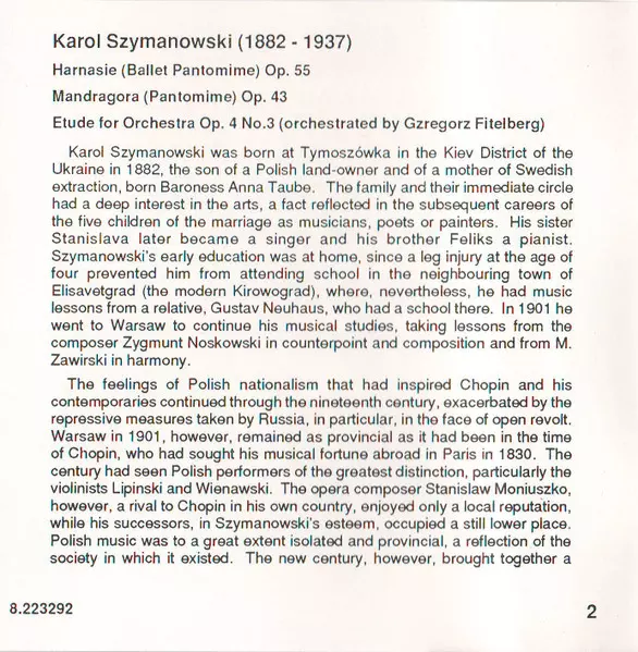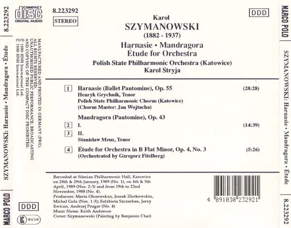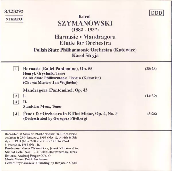 | Interpret | Karol Szymanowski | Orkiestra Symfoniczna Filharmonii Śląskiej | Karol Stryja | Chór Filharmonii Śląskiej | Henryk Grychnik | Stanislaw Meus |