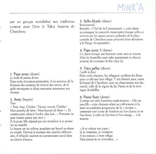 | Názov | Mink'a (Chants De La Terre Et De La Jeunesse) |