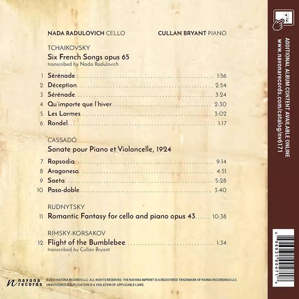 | Interpret | Pyotr Ilyich Tchaikovsky | Nikolai Rimsky-Korsakov | Gaspar Cassadó | Cullan Bryant | Antin Rudnytsky | Nada Radulovich |
