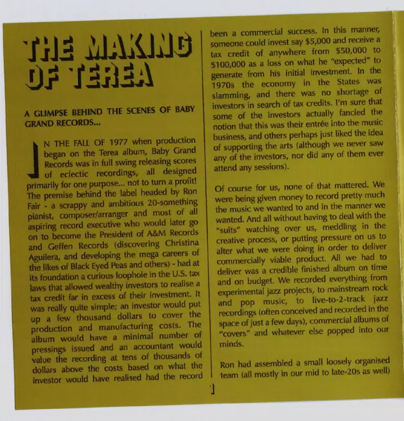 Terea is an alternative name used by Sharon Robinson. Because of the tax shelter issues with the label, Sharon was reluctant to use her own name, hence Terea .