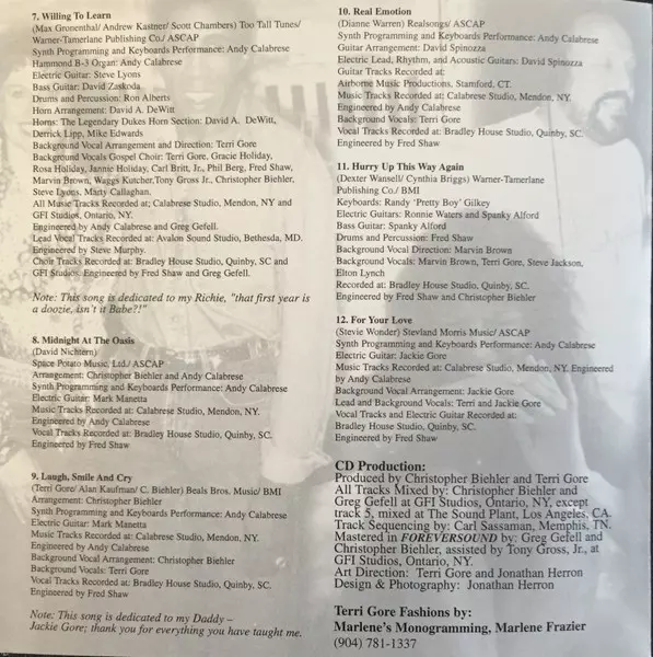 Backing Vocals Terri Gore | Electric Guitar, Arranged By [Background Vocal Arrangement], Backing Vocals Jackie Gore | Engineer Fred Shaw | Synth [Synth Prorgamming], Keyboards, Engineer Andy Calabrese | Vocals [Duet With] Jackie Gore | Written-By Stevie Wonder