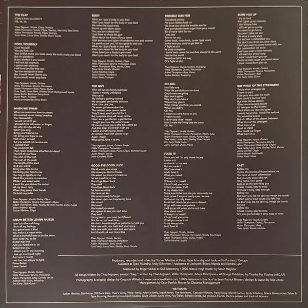 Arranged By [Horns Arranged By] Steve Berlin | Backing Vocals Laura Veirs, Shelley Short, Tune-Yards | Baritone Saxophone Steve Berlin | Bass, Piano, Guitar Adam Thompson (4) | Drums, Percussion Willis Thompson | Trumpet Victor Nash | Vocals, Guitar Thao
