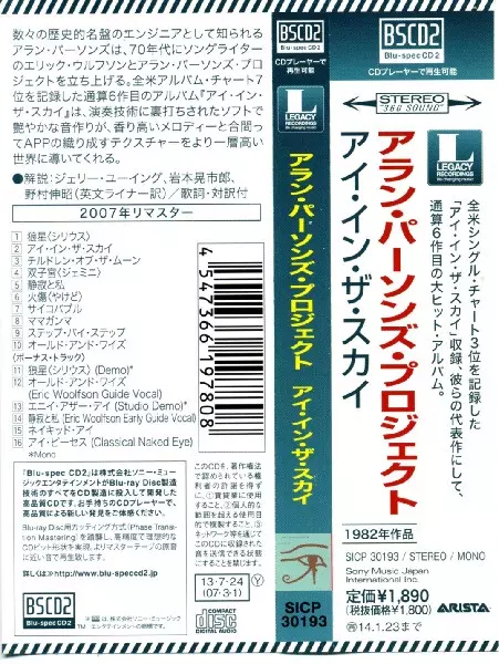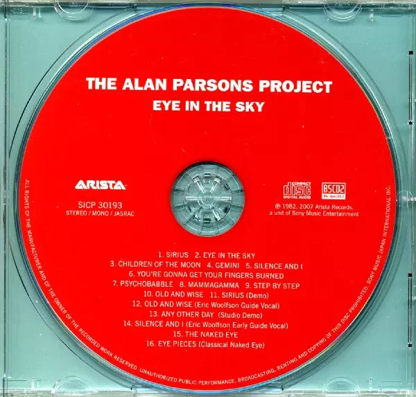 The Alan Parsons Project: Eye In The Sky verzia na CD v remasterované edícii. Toto konkrétne vydanie vyšlo v Japonsku vo vydavateľstve Arista dňa 30. júla 2013.