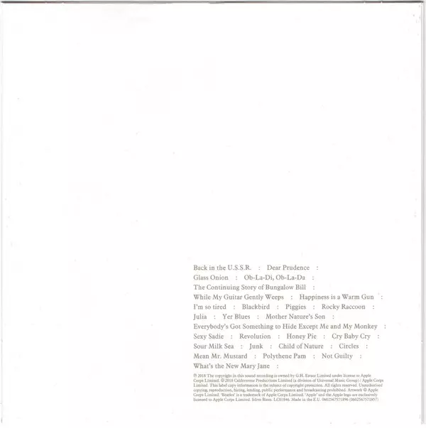 Album zasahuje do žánrov Rock, Pop Rock a Experimentálna hudba. Remix Numbered White Album Limited Super Deluxe Edition.
