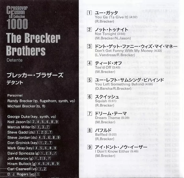 The Brecker Brothers: Detente LTD verzia na CD v limitované remasterované edícii. Toto konkrétne vydanie vyšlo v Japonsku vo vydavateľstve Arista dňa 8. decembra 2017. Album zasahuje do žánrov Jazz, Funk / Soul, Jazz-Rock, Funk a Jazz-Funk.