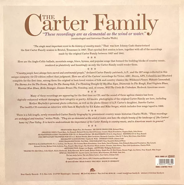| 11-13 | The Carter Family: In The Valley Of The Shenandoah | ||