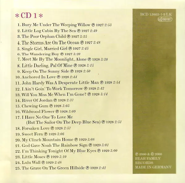 | 1-1 | The Carter Family: Bury Me Under The Weeping Willow | ||